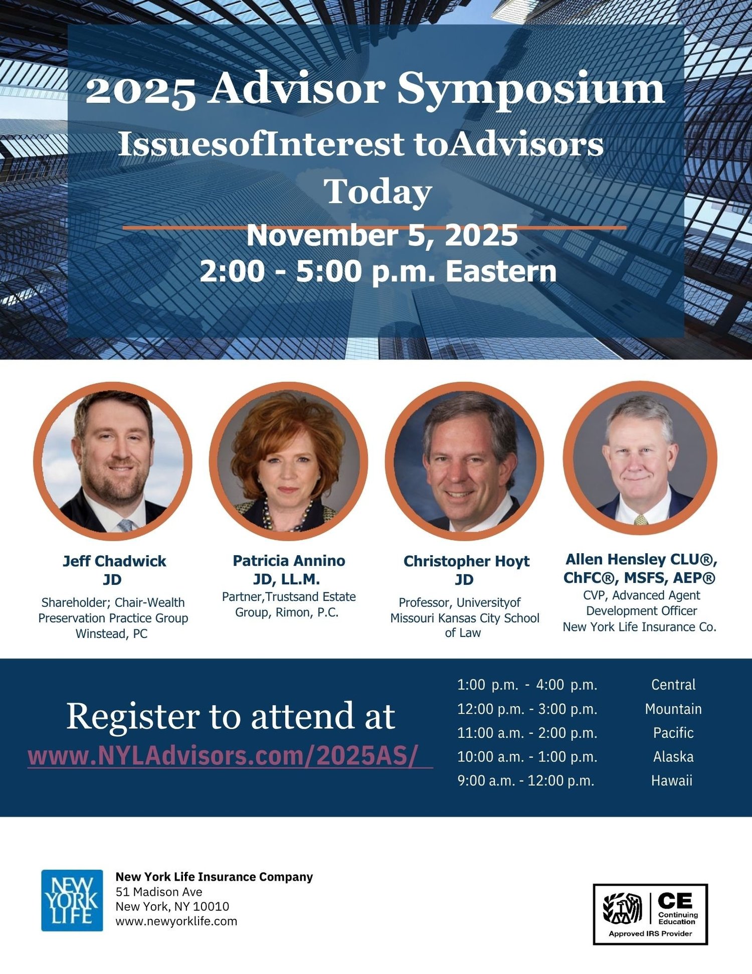 The annual adviser symposium contains a panel of trust and estate attorneys, wealth preservation practice leaders, professors from law schools, and security and personal finance professionals.