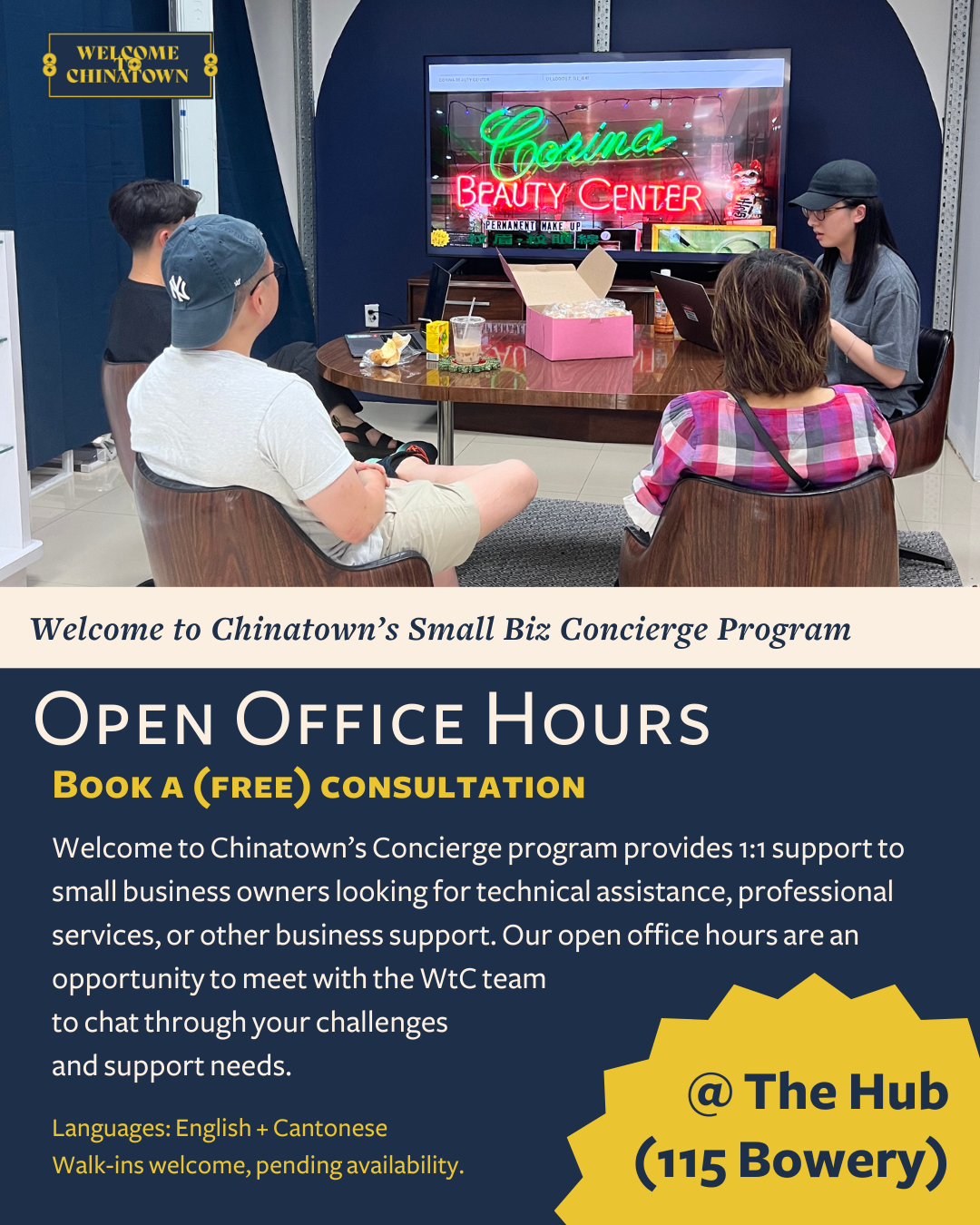 Welcome to Chinatown’s Concierge Program provides 1:1 support to small business owners looking for technical assistance, professional services, or other business support.