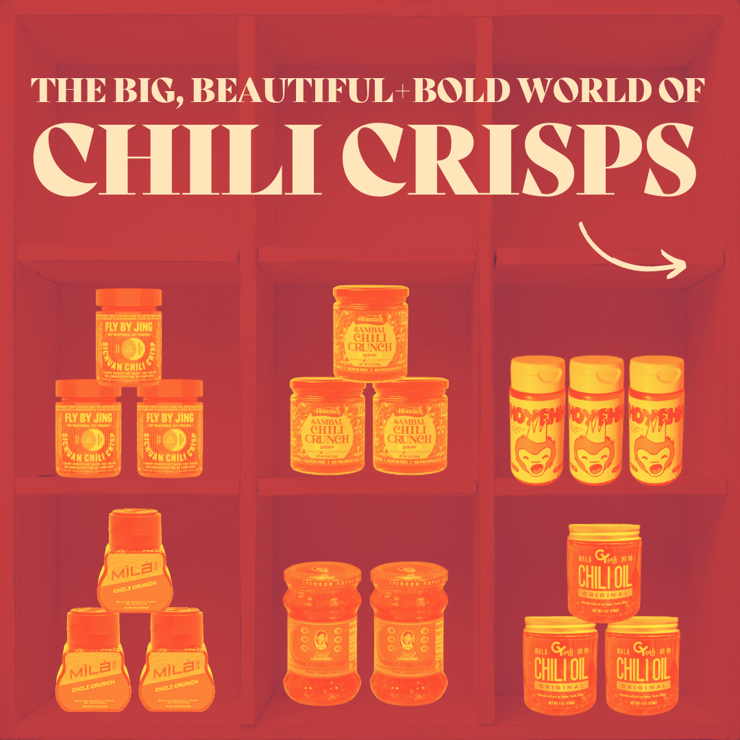 The special thing about chili crisp is that no two taste exactly the same! Each recipe is meticulously made with a unique combination of spices and aromatics. There are so many exciting brands led by visionary founders (many of whom we are proud to have partnered with in the past) that are bringing their own heritage and culture to life in their products — explore some of our favorites below.
