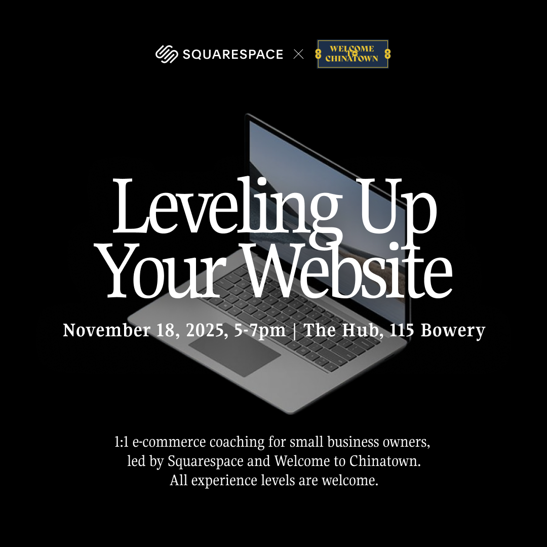 Join Squarespace and Welcome to Chinatown for 1:1 tailored website and e-commerce coaching!